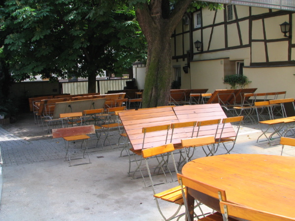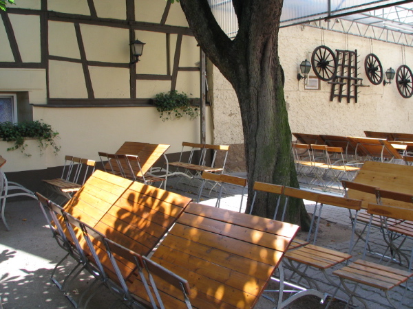 In den Sommermonaten können Sie nach einem Spaziergang, in der reizvollen Seckbacher Umgebung, in unserem gemütlichem Gartenlokal einkehren.Wie zu "Uropa's Zeiten" wird der Schoppen, nach einem Spaziergang über den Lohrberg, den Hutpark, oder das Seckbacher Feld, unter zwei großen Kastanienbäumen in der Krone genossen.
