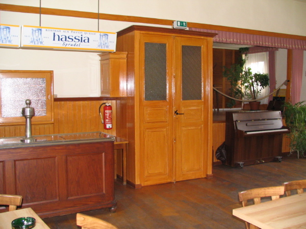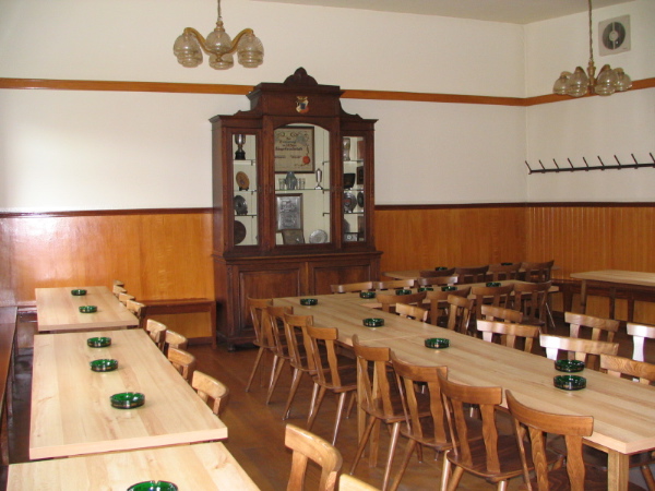 Für größere Veranstaltungen steht Ihnen unser Saal, für etwa 125 Personen zu Verfügung. Dieser ist ausgestattet, mit einer kleiner Bühne, sowie einer historischen Theke aus den 30er Jahren, die seinerzeit mit Eisblöcken gekühlt wurde.